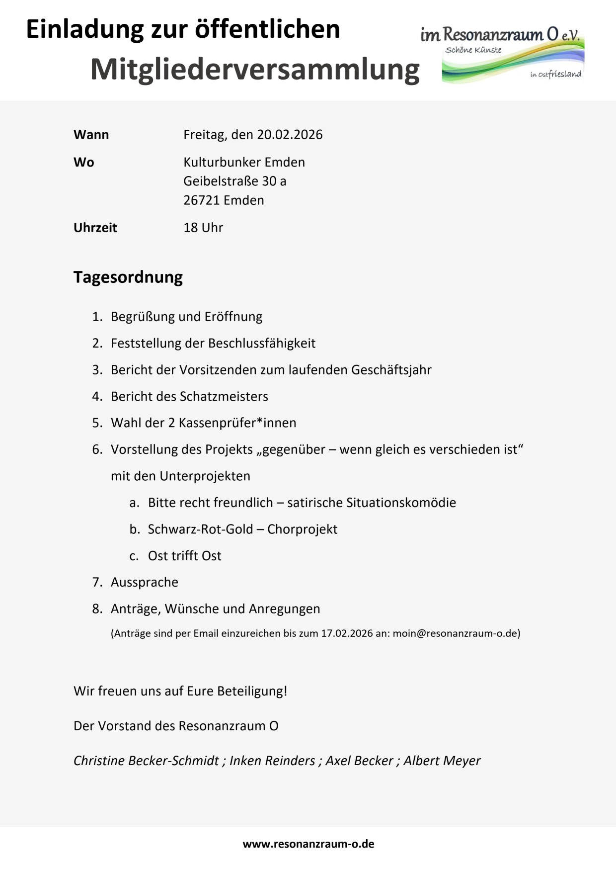 Wir laden ein zur ersten Mitgliederversammlung des Vereins am 20.02.2026!